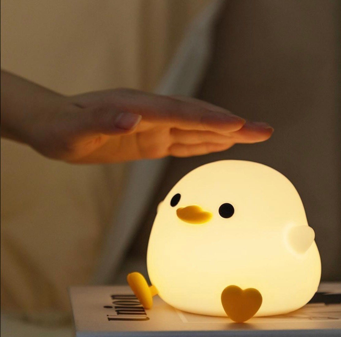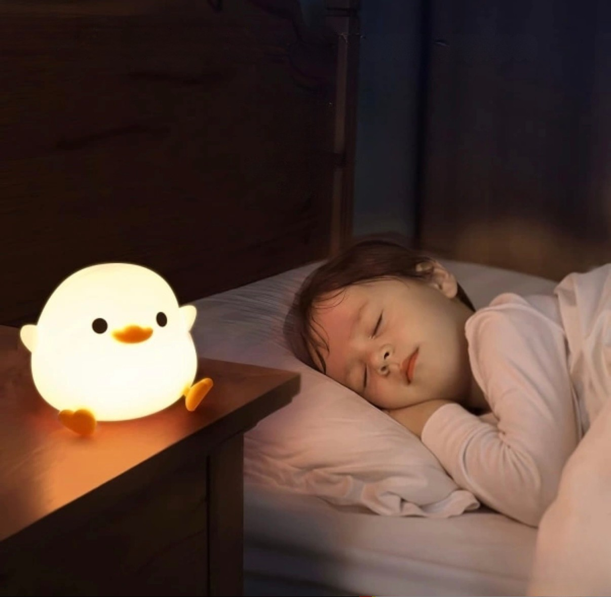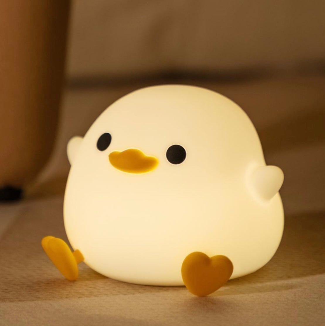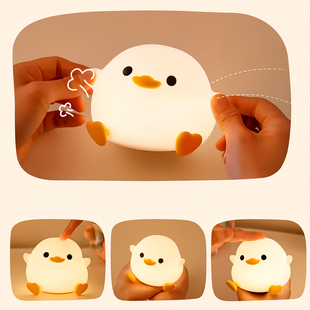 Detta charmiga nattljus i form av en liten anka kombinerar funktion och lekfull estetik. Tillverkad av mjuk, säker och giftfri silikon som känns behaglig och trygg för barn. Lampan har LED-belysning med varm och behaglig lyster, och du kan enkelt välja mellan tre ljusstyrkor beroende på behov.
