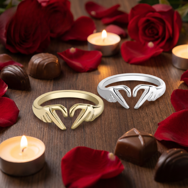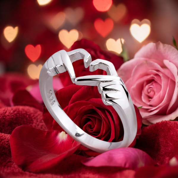 En tidlös och elegant ring formad som två händer som möts i ett hjärta —