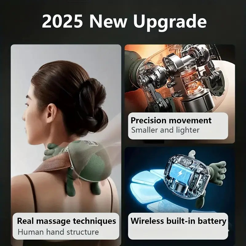 Upplev en äkta bionisk handmassage för nacke och axlar. Massagern använder dubbla massagehuvuden och 3D-knådning med flera massagepunkter som efterliknar mänskliga händer genom tryckande och rullande rörelser, vilket effektivt lindrar spänningar och ger skön avslappning. Apparaten är laddningbart med usb.